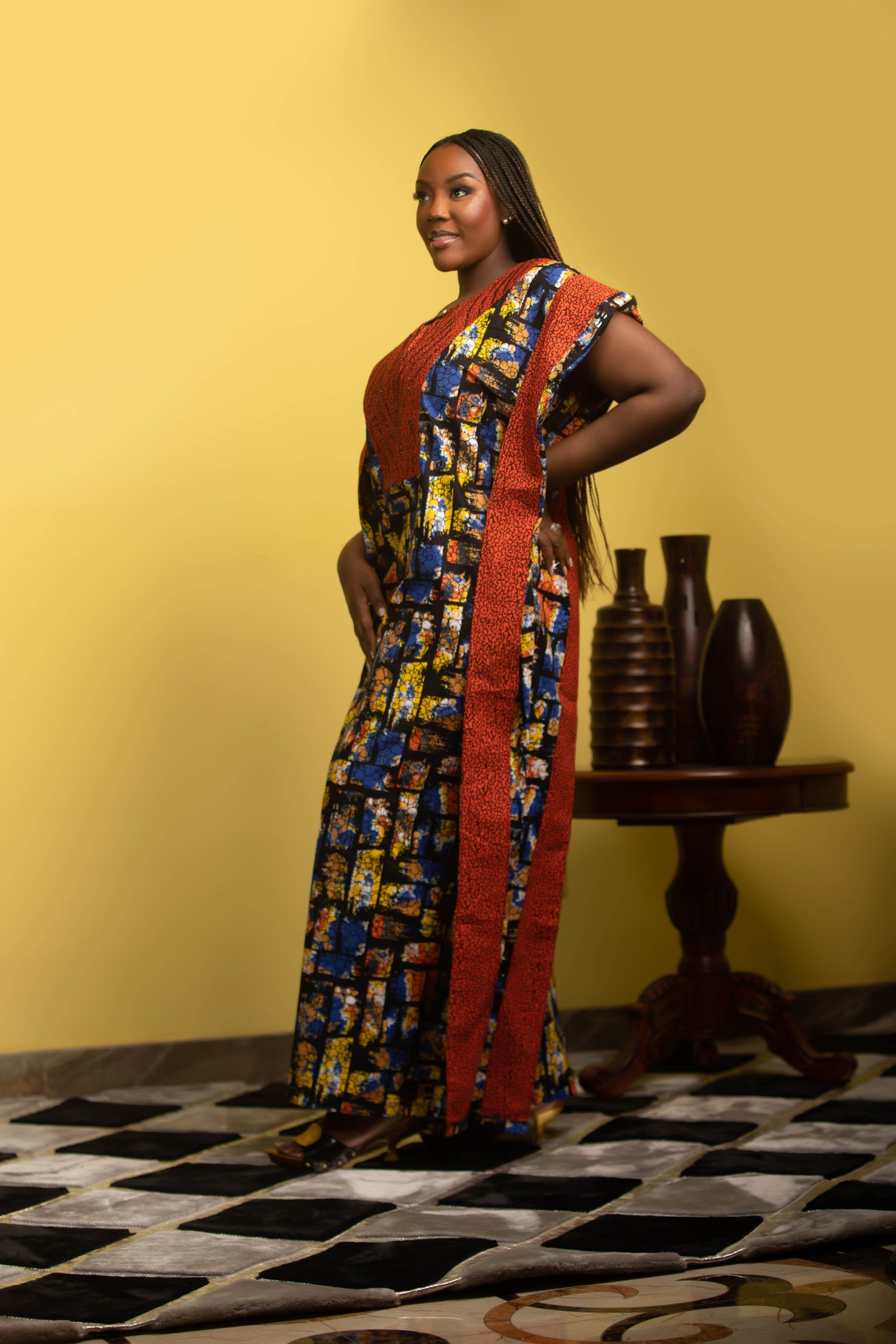 Multi Colored Long Dress with Orange Trim